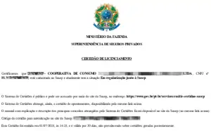 Contudo, a fim de viabilizar o cadastramento, basta que a cooperativa faça a inclusão de código CNAE compatível em seu registro. Foi exatamente o que fizemos no caso abaixo, com o regular cadastramento de Cooperativa de Proteção Veicular sendo feito através do sistema da SUSEP, na data de 01/07/2025: