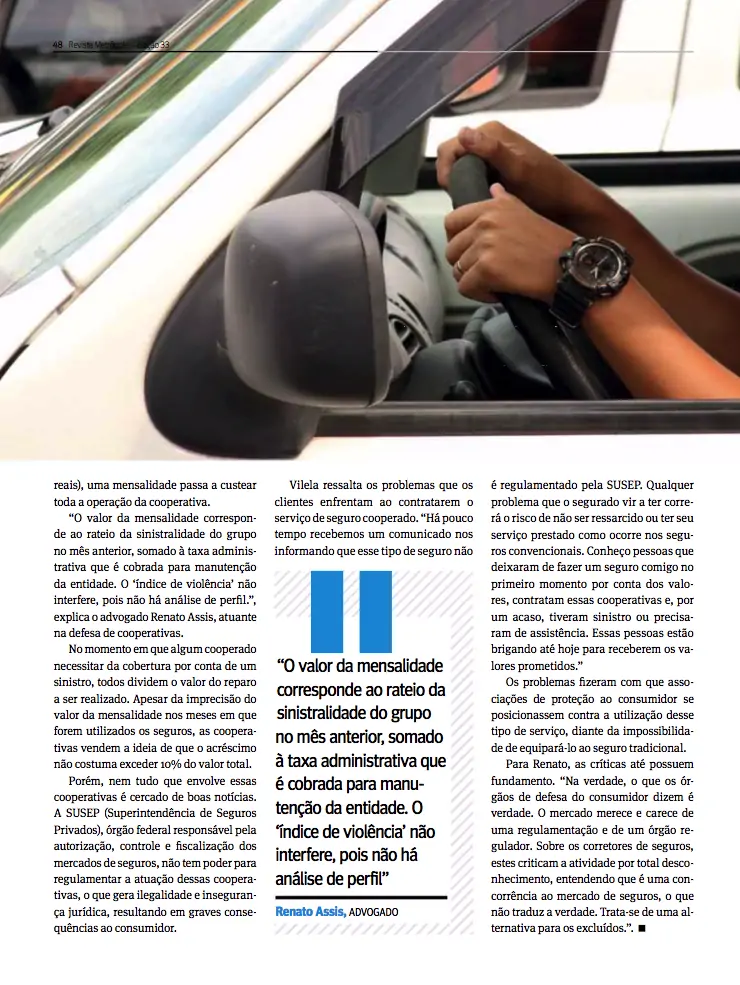 Na edição de novembro da Revista Metrópole, o sócio e fundador da Assis Videira, Dr. Renato Assis participou de uma reportagem especial sobre a grande necessidade do Seguro Automotivo. Na oportunidade, Dr. Renato falou da importância das Associações de Proteção Veicular e explicou sobre os valores das mensalidades.
